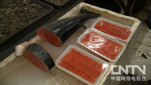 記者:這個(gè)三文魚賣多少錢一斤?